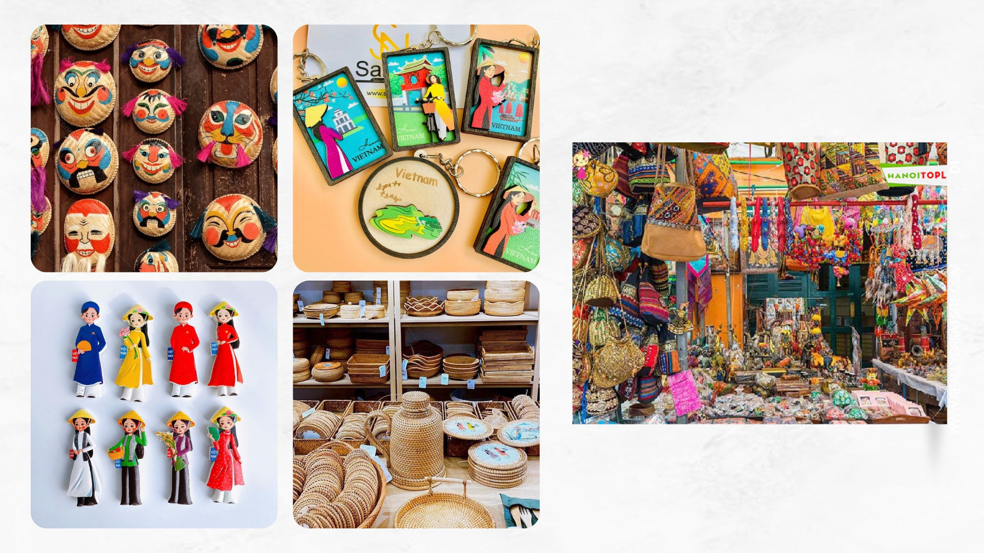 تشتهر فيتنام بتراثها الغني في مجال الحِرف اليدوية، وهي من أجمل وأصالة ما يمكنك شراؤه كتذكار. تشمل هذه المنتجات التحف المطلية باللكر، المصنوعات من الخيزران، التطريز اليدوي، والفخار. كل قطعة تُصنع بعناية وموهبة، وتحمل لمسة من الفن الفيتنامي التقليدي الذي توارثته الأجيال.
